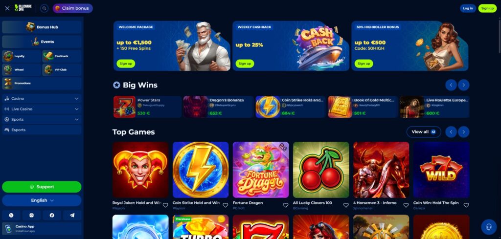 BILLIONAIRESPIN, casino licencié à Curaçao avec un taux de redistribution de 97%, propose 25 free spins sans dépôt via le code ANALYZER25. Une chance unique d’explorer ses 1 500+ jeux signés par des éditeurs renommés comme Pragmatic Play ou NetEnt, sans aucun investissement initial.
